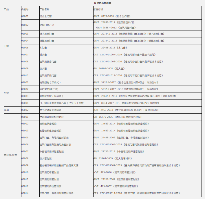 中窗认证于2018年6月13日成功获得了认证机构资质,取得了国家认监委颁发的认证机构批准书(批准号:CNCA-R-2018-426)。依照《中华人民共和国认证认可条例》的规定,中窗认证可以正式开展认证工作。目前推出的认证产品主要有:门窗、PVC型材、铝合金隔热型材、隔热条、硅酮结构密封胶、硅酮及改性硅酮建筑密封胶、建筑门窗、幕墙用密封胶条、建筑门窗用聚氨酯组角密封胶等产品质量认证以及门窗系统技术评定。